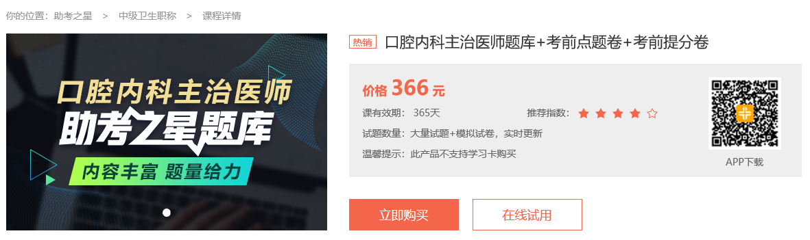 下载地址:口腔内科主治医师助考之星题库下载入口>>