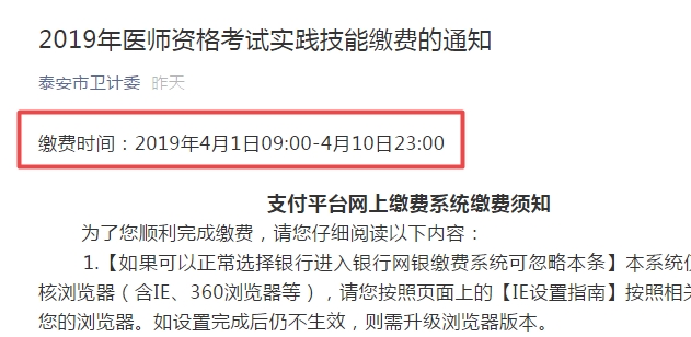 “口腔执业医师实践技能网上缴费泰安考点2019年缴费时间通知”的内容,由医学教育网编辑整理搜集,希望对想要了解相关问题的人提供帮助。