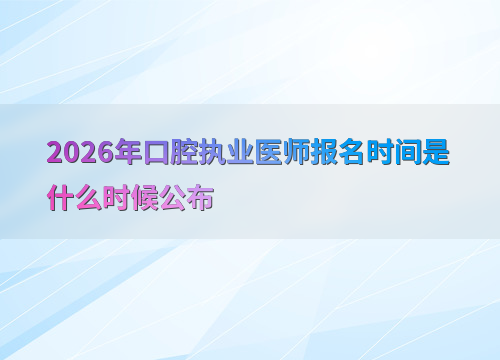根据往年规律,2026年口腔执业医师考试报名时间预计在1月至2月间公布。