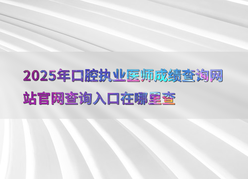 2025年口腔执业医师综合考试成绩预计在9月公布,考生可通过国家医学考试网(http://www.nmec.org.cn/)首页“成绩查询入口”进行登录查询。