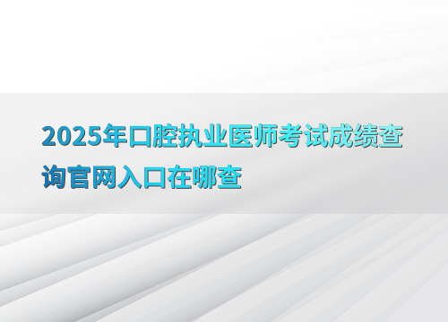2025年口腔执业医师综合考试成绩预计在9月公布,考生可通过国家医学考试网(http://www.nmec.org.cn/)查询。