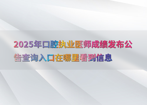 2025年口腔执业医师综合考试成绩预计在9月公布,参考近年规律,考后约1个月可查。