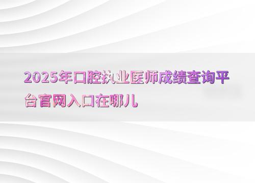 2025年口腔执业医师综合考试成绩已于9月23日公布,考生可通过国家医学考试网(http://www.nmec.org.cn/)首页“成绩查询入口”快捷界面进行查询。