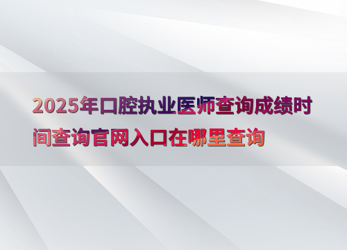2025年口腔执业医师综合考试成绩已于9月23日公布。