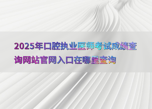 2025年口腔执业医师综合考试成绩已于9月23日公布,考生可通过国家医学考试网(http://www.nmec.org.cn/)首页“成绩查询入口”进行查询。