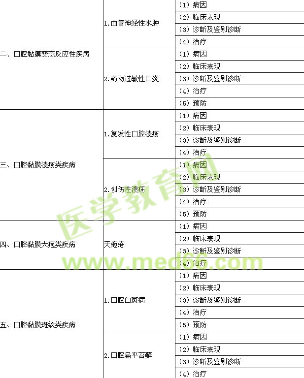 2015年口腔执业医师《口腔黏膜病学》考试大纲已经公布,为帮助广大口腔执业医师考生进行复习,医学教育网整理如下: