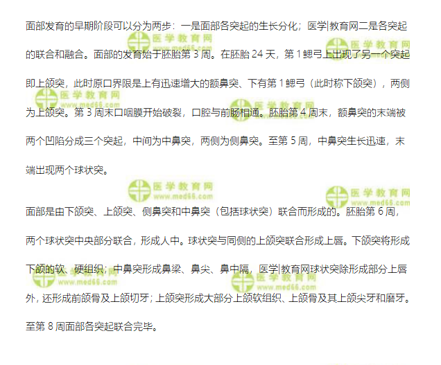 以上为“口腔组织病理学口腔颌面部发育之“面部发育””全部内容,由医学教育网编辑整理搜集,希望对正在备战口腔医师考试的人提供帮助,更多备考资料干货,敬请关注医学教育网口腔执业医师辅导精华栏目。