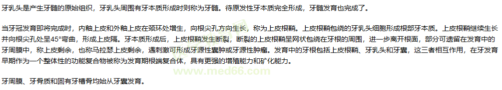 以上为“口腔执业医师口腔组织病理学“牙体、牙周组织的形成”考点解析”全部内容,希望对正在备战口腔医师考试的人提供帮助,更多备考资料干货,敬请关注医学教育网口腔执业医师辅导精华栏目。