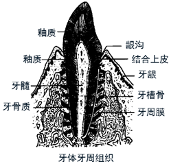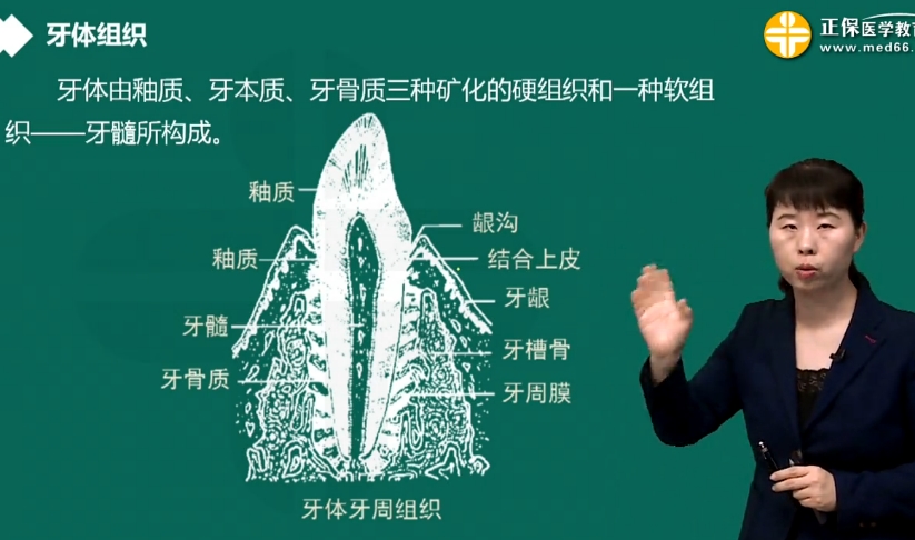 牙体组织:牙体由釉质、牙本质、牙骨质三种矿化的硬组织和一种软组织——牙髓所构成。