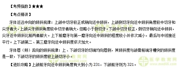 2.【答案及解析】B。上颌前牙向近中倾斜角度有大到小为231,下颌前牙则为321。
