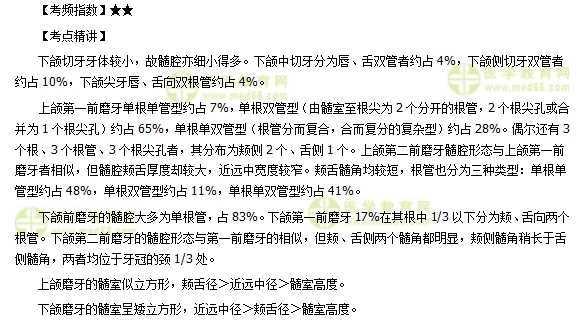 “恒牙髓腔形态及应用解剖——口腔执业医师章节考点进阶精讲”的内容,由医学教育网编辑整理搜集,希望对正在备战口腔医师考试的人提供帮助,更多备考资料干货,敬请关注医学教育网。