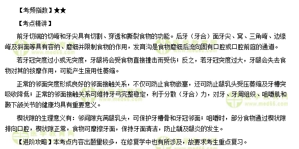 本考点内容出题量较多,在修复学中也有所涉及,故要求考生重点复习。为方便大家复习,医学教育网编辑将“口腔执业医师考试知识点详解——牙体形态的生理意义”的具体内容整理分享如下: