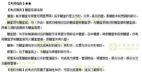 此考点内容属于基础性知识,内容比较简单,适当了解即可。为方便大家复习,医学教育网编辑将“口腔执业医师考点复习资料:髓腔各部名称”的具体内容整理分享如下: