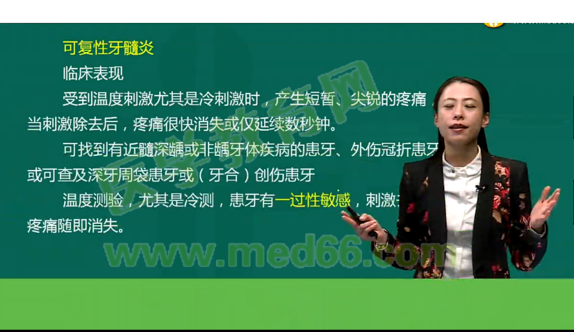 以上是"口腔内科学知识点精讲之可复性牙髓炎(附试听资料)"的全部内容,由医学教育网小编为您整理,如果您觉得这篇文章还不错,可以分享给身边的朋友。