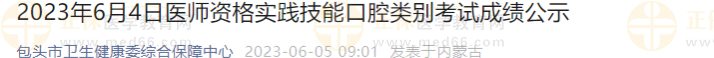 内蒙古包头发布2023年6月4日医师资格实践技能口腔类别考试成绩,请相关考生及时查看,有任何疑问及时与官方联系,具体内容如下: