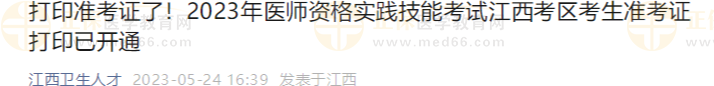 2023年医师资格实践技能考试江西考区考生准考证打印功能即日(5月24日)起开放。