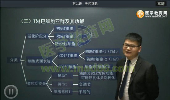 “T淋巴细胞”属于口腔执业医师《医学免疫学》中的考点,此知识点为此科目中非常重点的内容,对于这个知识点考试大纲要求如下。今天和我一起来看看医学教育网的叶冬老师是怎么讲解这个知识点的。