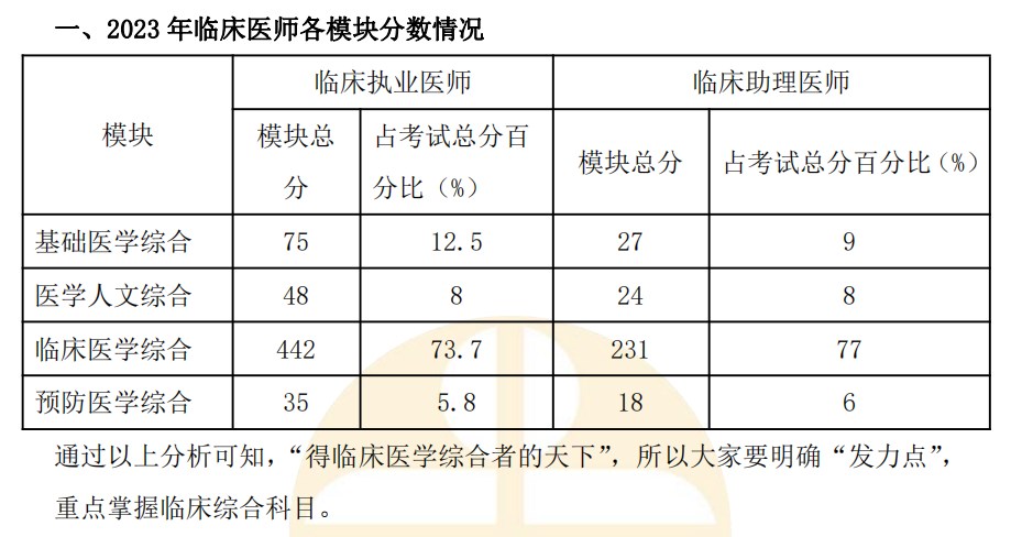 ①根据2023年实际考情,拆解医师资格对应类别考试各模块分数分布情况,明确2024发力点,「有的放矢」进行冲刺!