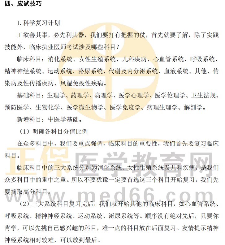 临床医师各科目重难点概括