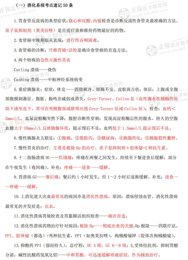 临床医师各科目重点考点速记