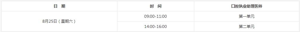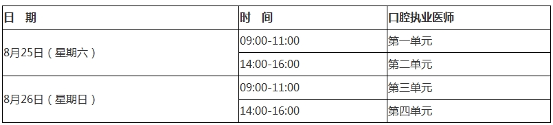 注:2018年军队考生加试口腔执业医师考试军事医学内容的考试时间为8月25日17:00-18:00。