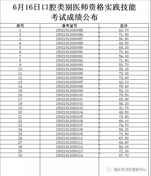 - · 内蒙古包头考点6月7日口腔执业医师资格实践技能考试成绩公示