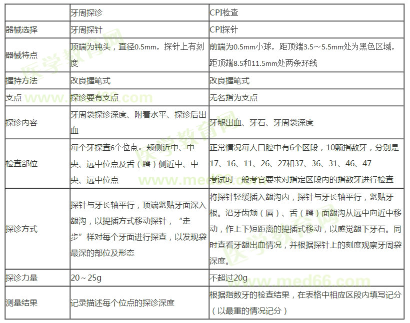 关于“一表解读牙周探诊和CPI检查的区别”,为帮助大家掌握有关内容,现将具体资料分享如下: