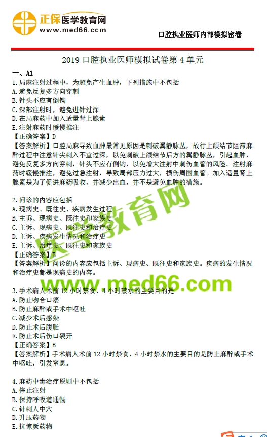 以上关于“2019年口腔执业医师模考测评第四单元150题(附解析)”的内容,由医学教育网编辑搜集整理,希望对大家有帮助。祝大家都取得好成绩,顺利通过考试!
