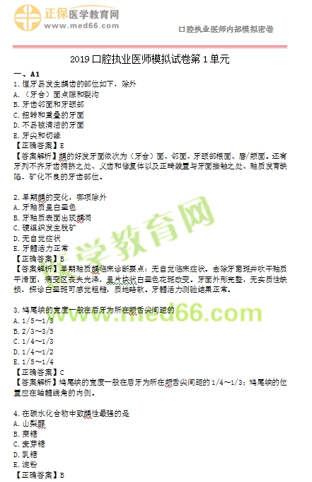 以上关于“2019年口腔执业医师模考测评第一单元150题(附解析)”的内容,由医学教育网编辑搜集整理,希望对大家有帮助。祝大家都取得好成绩,顺利通过考试!