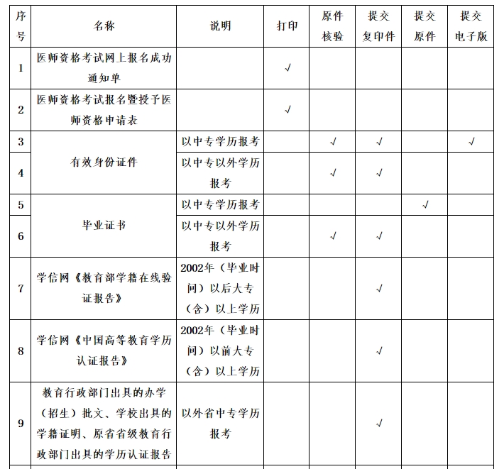 三、考生要确保提交材料的真实性、完整性、有效性、准确性,对提交虚假材料报名的考生,依据《医师资格考试违纪违规处理规定》给予相应处理。