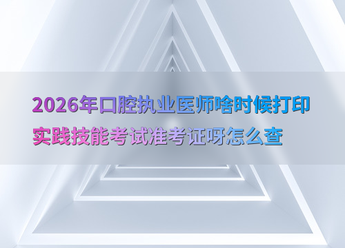 2026年口腔执业医师实践技能考试时间为6月6日至11日,准考证打印时间因地区而异,一般在考前1-2周登录国家医学考试中心官网进行打印。