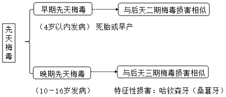 ·获得性梅毒:一期梅毒;二期梅毒;晚期梅毒。