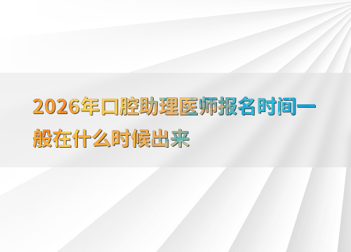 2026年口腔助理医师考试报名时间预计在1月至2月期间启动,参考近年安排(如2025年为2月8日至2月21日),建议考生提前关注国家医学考试网公告。