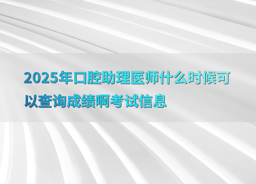 2025年口腔助理医师综合考试成绩预计在9月公布,参考近年数据,一般考后1个月左右可查。