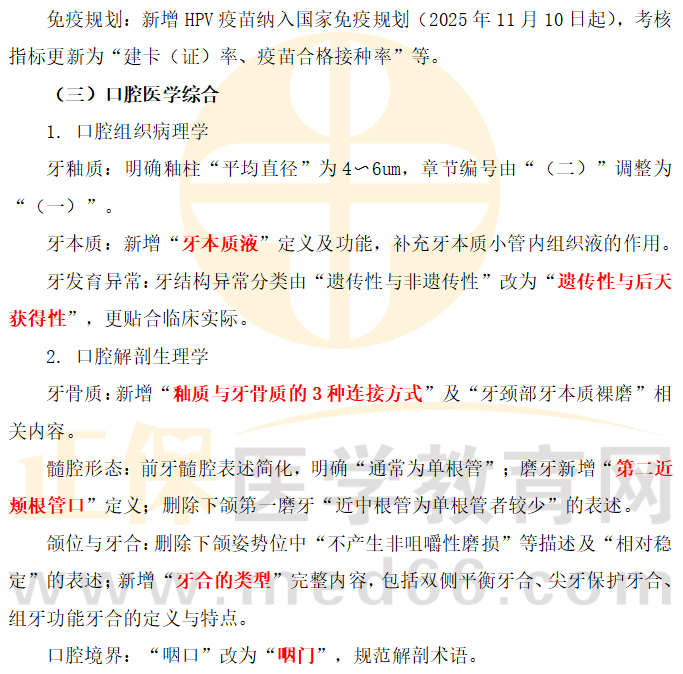 - · 【完整版】2026年口腔助理医师《综合笔试》教材变动细则
