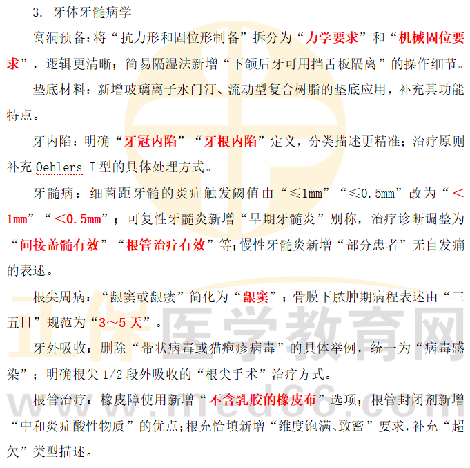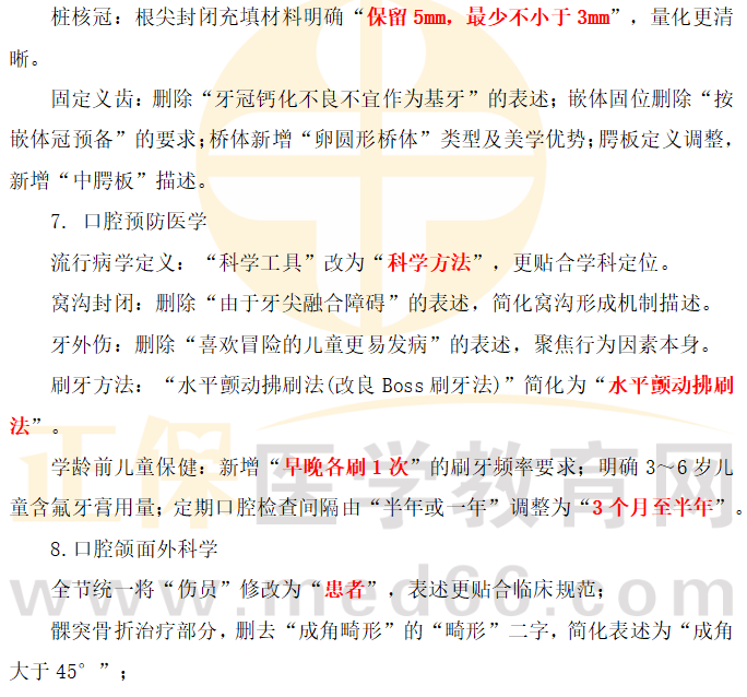 3.贴合临床应用:关注疾病分类、治疗原则的优化(如牙结构异常、乳牙挫入处理),结合临床场景理解变动意义,避免死记硬背。