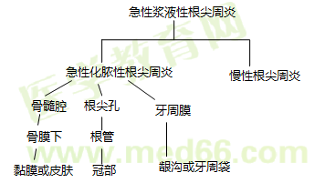 感染途径:大多数由牙髓途径造成根尖周组织的感染;少数经由牙周病变、邻牙根尖周病变或血源感染。