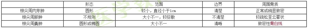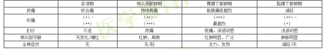 化脓期:急性根尖周脓肿、骨膜下脓肿、黏膜下脓肿