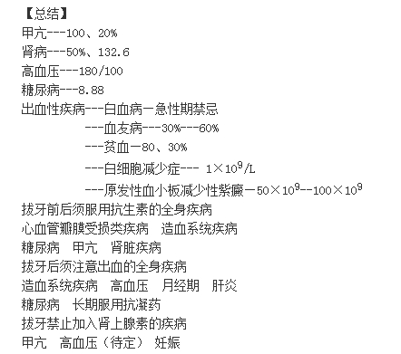 1)拔牙禁忌证及与系统疾病的关系(必考)