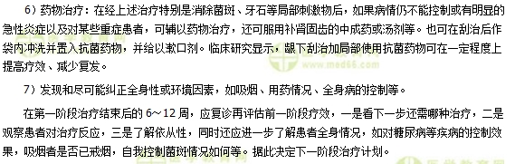 3)消除菌斑滞留因素及其他局部刺激因素,如充填龋洞、改正不良修复体、治疗食物嵌塞等,还应做必要的牙髓治疗、纠正口呼吸习惯等。