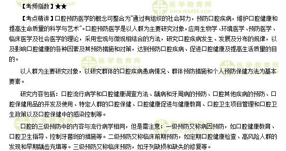 “口腔预防医学绪论——口腔执业助理医师考点测试”的内容,由医学教育网编辑整理搜集,希望对正在备战口腔医师考试的人提供帮助,更多备考资料干货,敬请关注医学教育网。