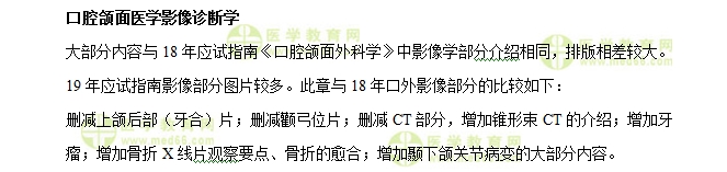 “2019年口腔助理医师考试辅导教材变动之口腔颌面医学影像诊断学”由医学教育网编辑整理搜集,更多考试信息敬请关注医学教育网。定制课程免费试听>>