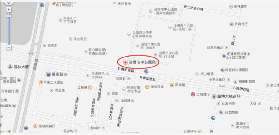 1. 淄博市中心医院(淄博市张店区共青团路54号)