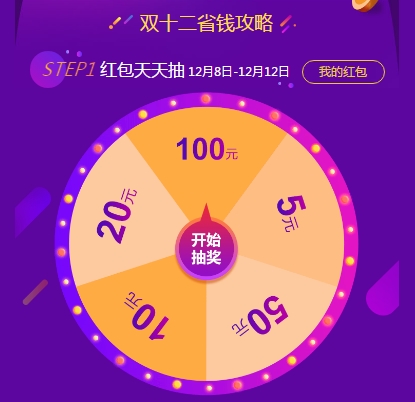 攻略:12月8日到12月12日,大家可以天天抽红包,得到的优惠券可以累加,并且与其他优惠共用。