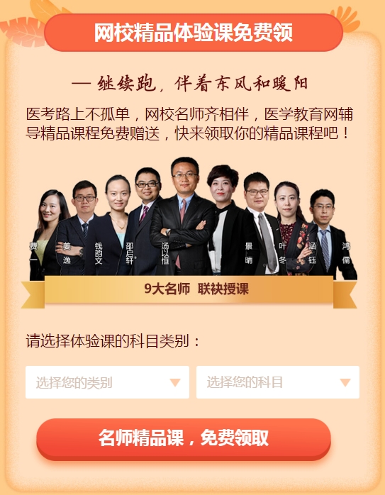 医考路上不孤单,网校专业师资齐相伴,医学教育网辅导精品课程免费赠送,快来选择你的辅导类别,领取精品课程吧!