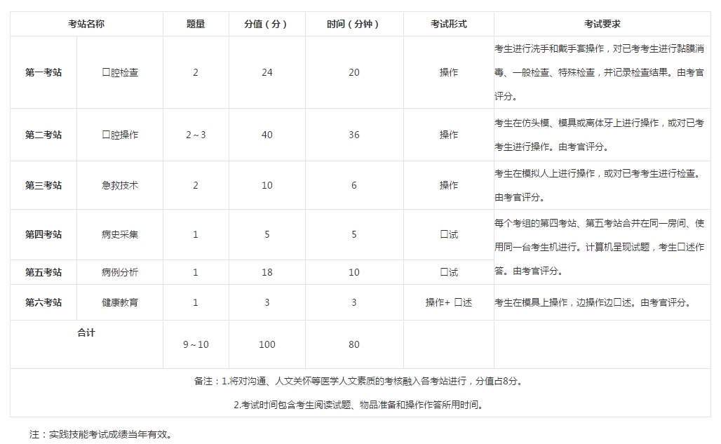 拓展-口腔执业助理医师实践技能各站分数及考试时间