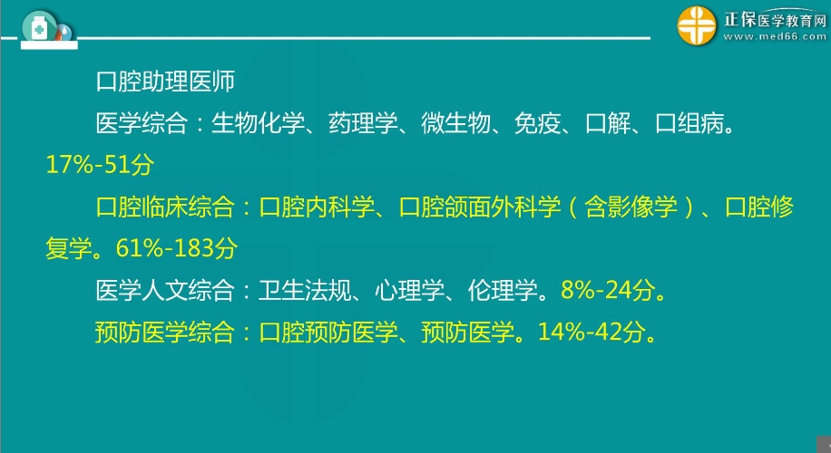 “口腔助理医师笔试科目2019年比重划分及往年分值分布!”的内容,由医学教育网编辑整理搜集,希望对想要了解相关问题的人提供帮助。