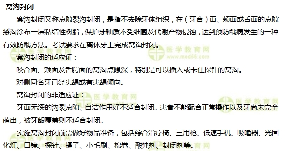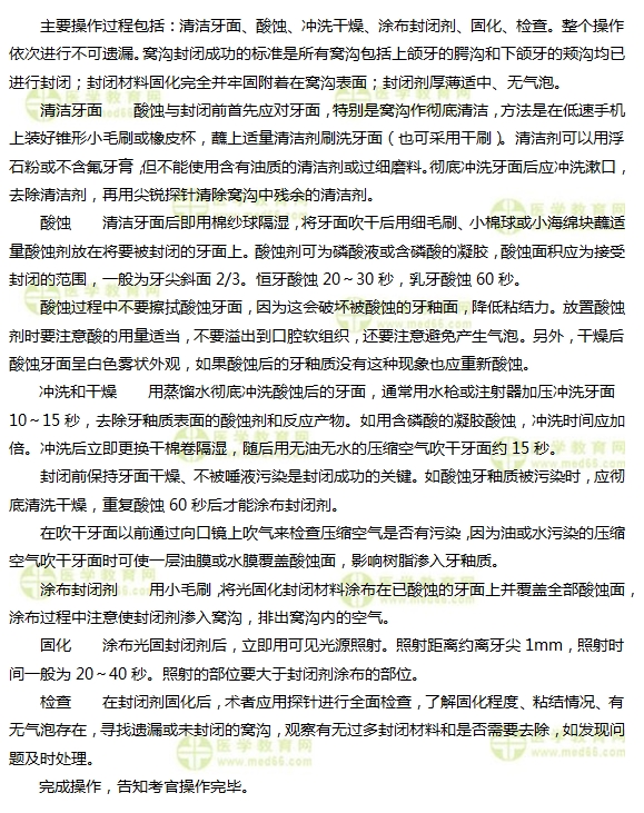 关于“2019年口腔助理医师技能考点——窝沟封闭”,为帮助大家进一步掌握有关考点,医学教育网编辑整理具体资料如下: