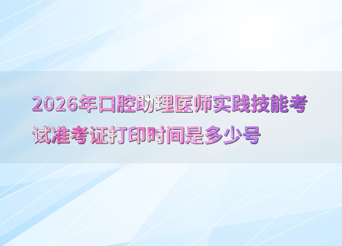 2026年口腔助理医师实践技能考试时间为6月6日至11日,准考证打印时间因地区而异,通常在考前1-2周开放打印。