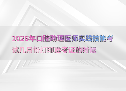 2026年口腔助理医师实践技能考试定于6月6日至11日举行,准考证打印时间因地区而异,通常在考前1-2周开放。